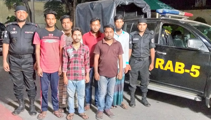 আটককৃতরা হলো কালিগঞ্জ বাজারের মৃত ছহির উদ্দিনের ছেলে আঃ মজিদ (২৬), মল্লিকপাড়া গ্রামের শরিফুল ইসলাম এর ছেলে রানা প্রামানিক (২৮), বর্গাছা গ্রামের রমণী সরকারের ছেলে অসীম কুমার (২৩), পূর্ব বাহাদুরপুর গ্রামের বলরাম হালদারের ছেলে বকুল হালদার (৩০), বড়গাছা গ্রামের বরেন্দ্র নাথের ছেলে গোবিন্দ কুমার (২২), সনাতন সূত্রধরের ছেলে সজল কুমার সুত্রধর (৩০)।