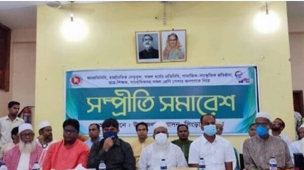নাটোরের সিংড়ায় জনপ্রতিনিধি, রাজনৈতিক নেতৃবৃন্দ, সকল ধর্মের প্রতিনিধিগণ, সামাজিক সাংস্কৃতিক প্রতিষ্ঠান, ছাত্র- শিক্ষক ও সাংবাদিক সহ সকল শ্রেণীর মানুষের সমন্বয়ে সম্প্রীতি সমাবেশ অনুষ্ঠিত হয়েছে। বৃহস্পতিবার বিকেল ৩ টায় উপজেলা পরিষদ
