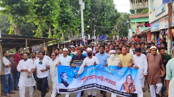 সারাদেশে সাম্প্রদায়িক সন্ত্রাসের প্রতিবাদে শান্তি সমাবেশ ও শোভাযাত্রা করেছে উপজেলা আওয়ামী লীগ ও অঙ্গসংগঠন। মঙ্গলবার বিকেল সাড়ে ৪ টায় উপজেলা আওয়ামী লীগের কার্যালয় থেকে শান্তি মিছিল শহরের প্রধান প্রধান সড়ক