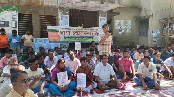 নাটোরের সিংড়ায় আওয়ামী লীগ সরকারের নির্বাচনী ইশতেহার বাস্তবায়নের দাবিতে গণঅনশন করেছে হিন্দু বৌদ্ধ খ্রিস্টান ঐক্য পরিষদ। শনিবার সকাল থেকে উপজেলা চত্বরে এ অনশন শুরু করে। বক্তব্য রাখেন, হিন্দু বৌদ্ধ খ্রিস্টান